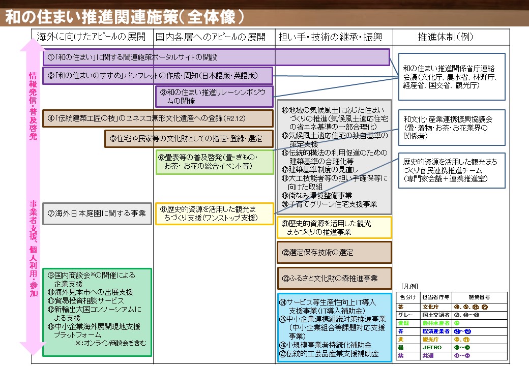 和の住まい推進 関係省庁連絡会議 (文化庁、農水省、林野庁、経産省、国交省、観光庁) |